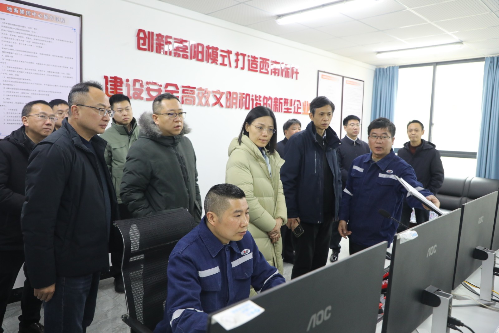 调研紧扣矿山安全法修订核心需求,旨在通过实地考察基层矿山安全生产实践,收集智能化转型、隐患治理等方面的鲜活经验,为法律修订提供坚实的实践支撑。调研组一行在嘉阳煤矿调度中心、智能化采煤队集控室了解了生产调度情况,安全视频AI分析系统、电力智能管控体系等“智改数转”建设成果,对企业以“AI+安防”推动安全管理向数据决策转变的创新举措给予肯定;深入1207智能化采煤工作面,实地察看了薄煤层开采流程、智能化设备协同运作及安全实时管控情况,重点了解远程操控、风险预警等安全生产关键环节。同时,关切询问了企业管理人员及普通职工收入情况,关注安全生产与职工权益保障的协同发展。调研组指出,嘉阳集团在煤炭资源禀赋不足的情况下,坚守“科技兴安、科技兴企”理念,实现安全生产2869天的成绩,其智能化改造、标准化生产等实践经验,对矿山安全法修订中强化科技赋能、压实主体责任等条款具有重要参考价值。