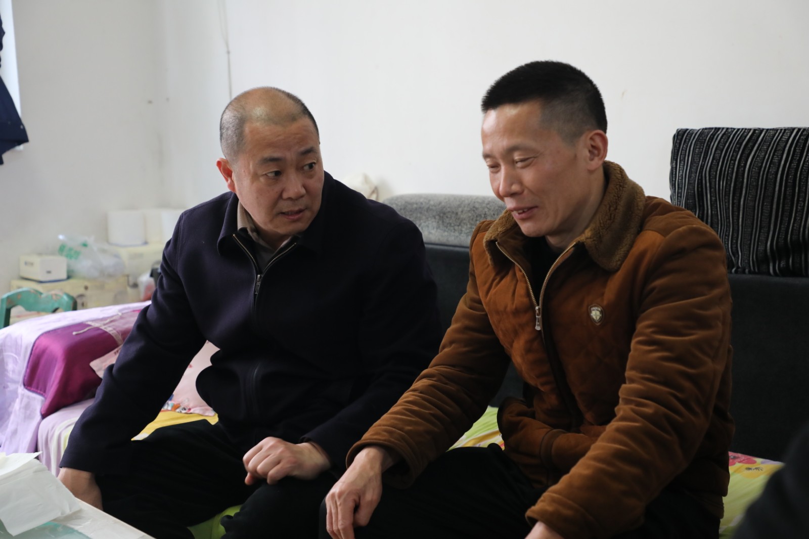 “伤恢复得怎么样?安心把伤养好,调整好心态,争取再回一线工作”“年货准备好了吗?家里还有什么困难?”一句句关切的问候,一声声温暖的嘱托,驱散了冬日的寒意,让困难职工家庭倍感亲切与温暖。带着对困难职工的深切关怀,党委副书记、副董事长、总经理谢建国,党委副书记、工会主席王维洪,分别前往困难职工郑玉平、李小军家中慰问。每到一户都耐心询问职工的身体健康状况、家庭生活情况及当前面临的困境,认真倾听职工的心声诉求与未来期盼,询问了解帮扶政策的落实情况。鼓励他们要坚定生活信心,保持乐观向上的心态,勇敢面对眼前的困难,相信在企业的关怀支持和自身的努力下,一定能逐步改善生活条件,早日走出困境。