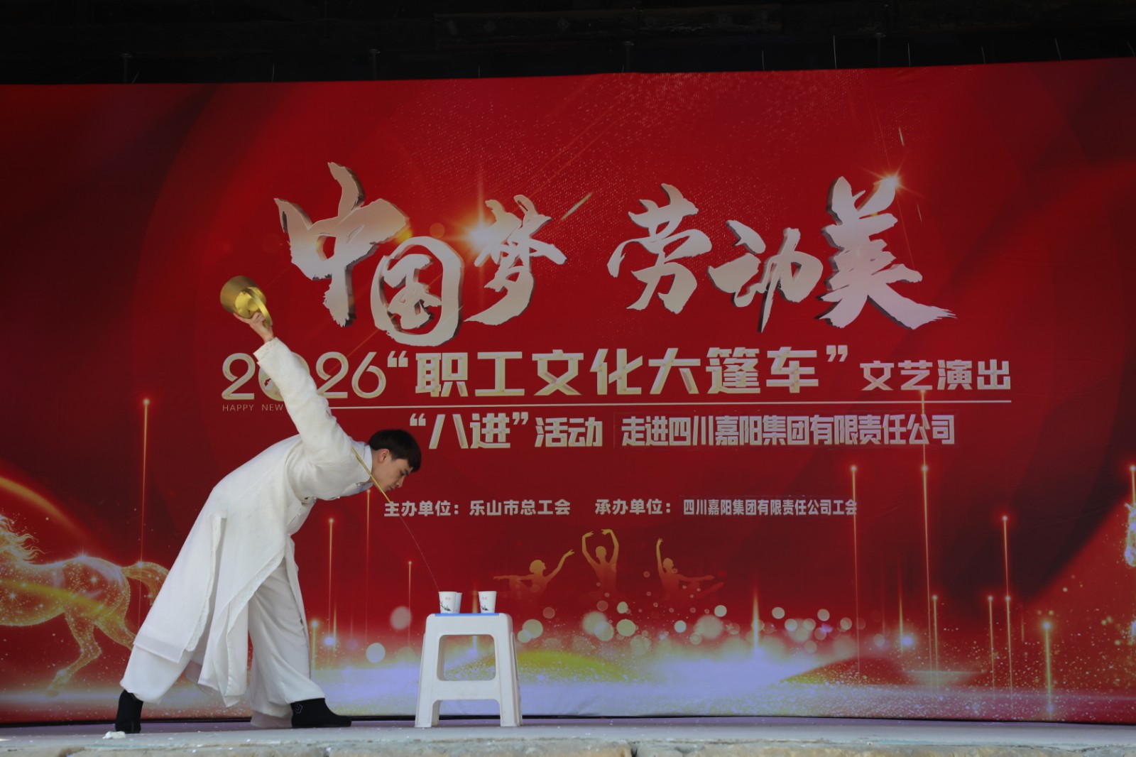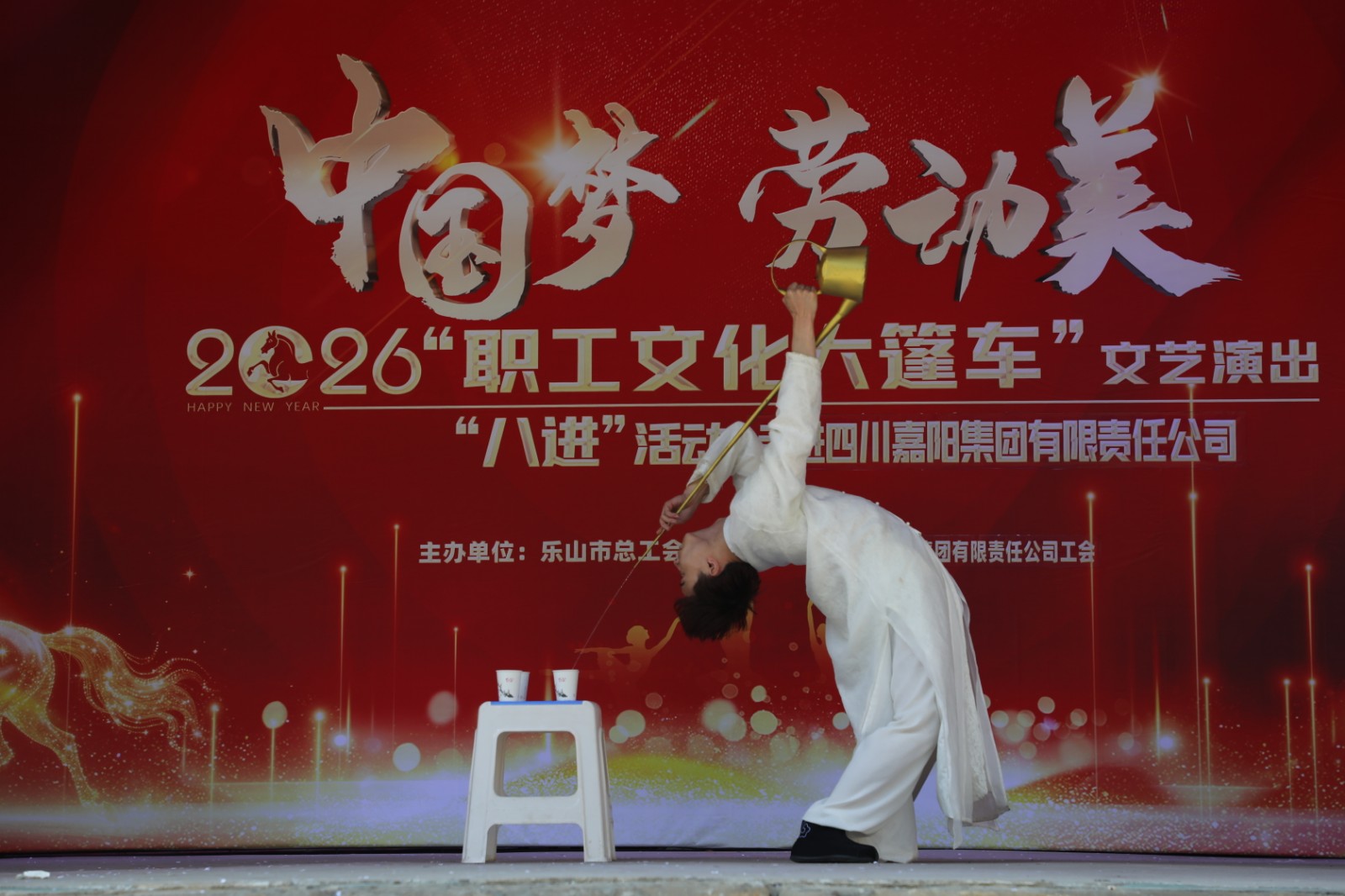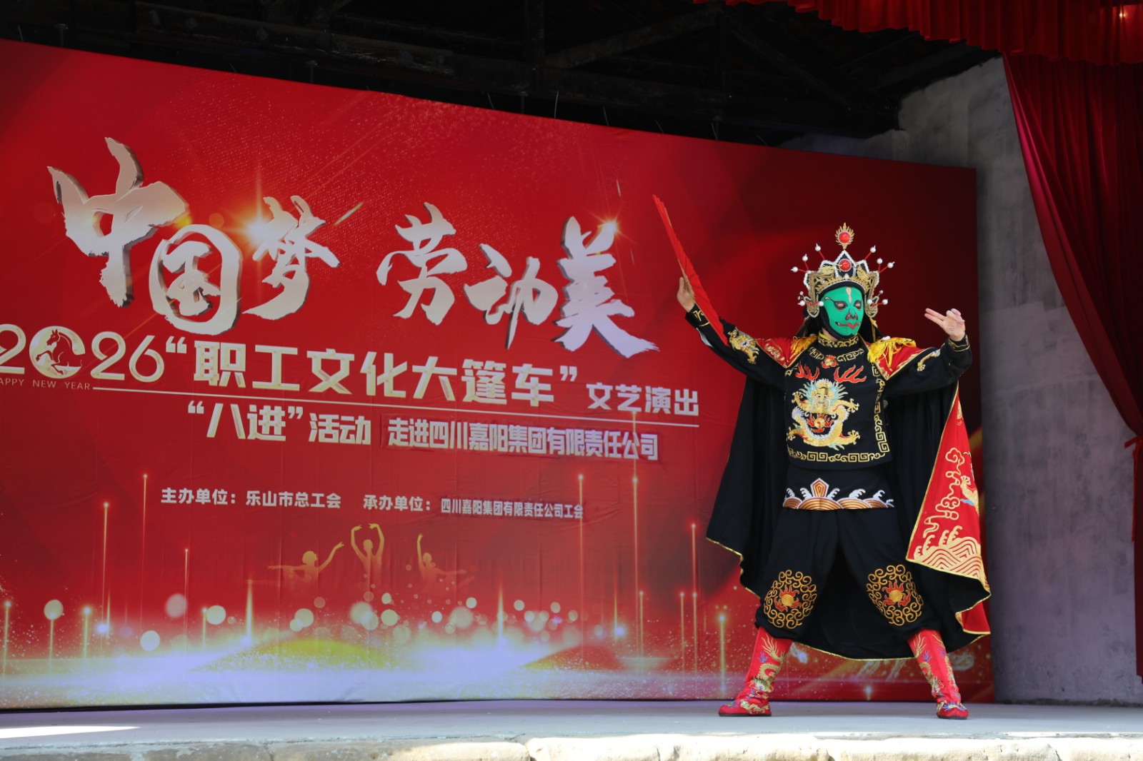 据悉,今年是乐山市总工会2026“职工文化大篷车”文艺演出走进嘉阳的第3个年头,演出大力弘扬劳模精神、劳动精神、工匠精神,丰富了职工及家属们的精神文化生活,鼓舞士气振奋人心,让他们以更加饱满的热情投入到新一年的工作生活之中。