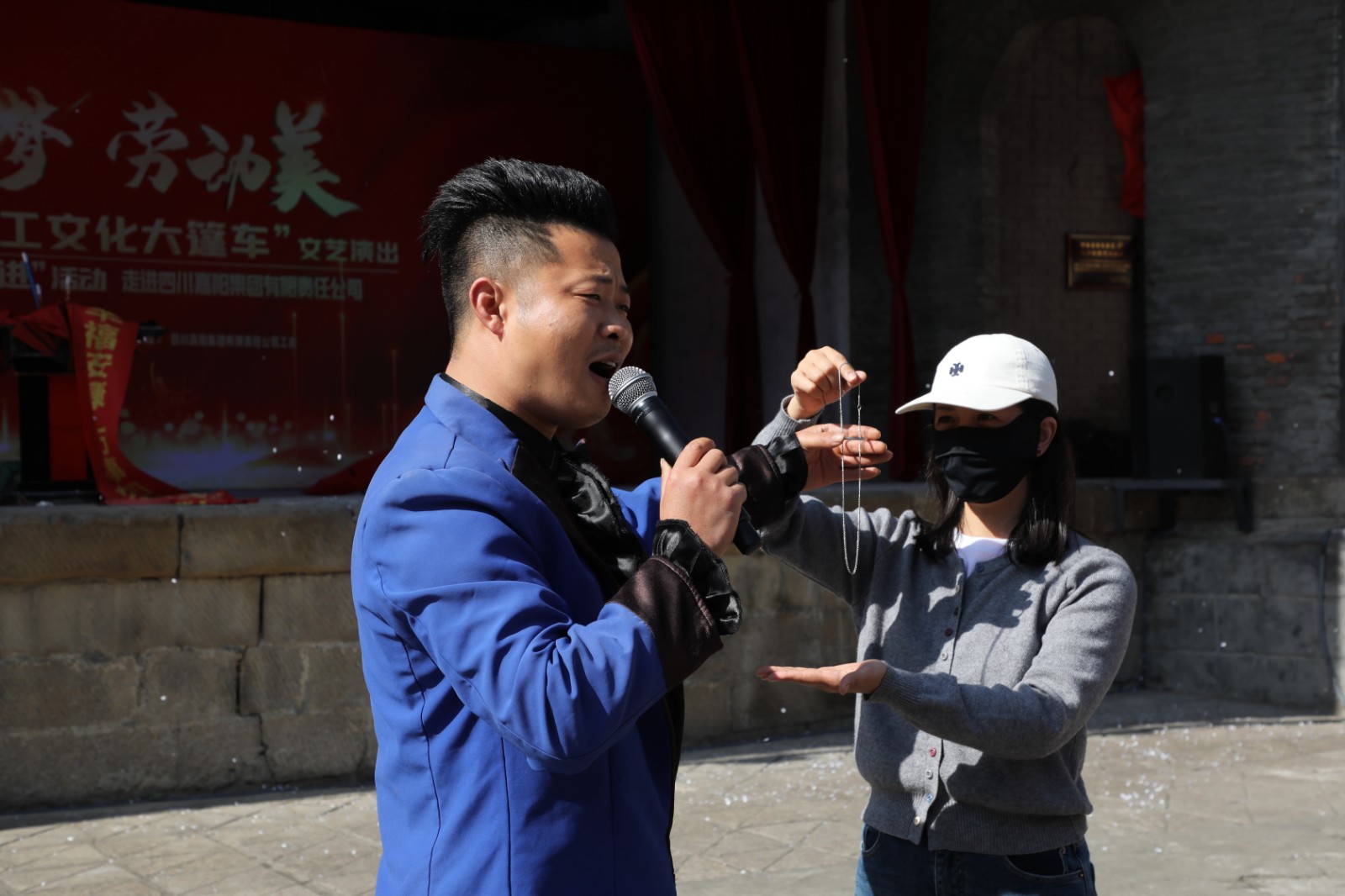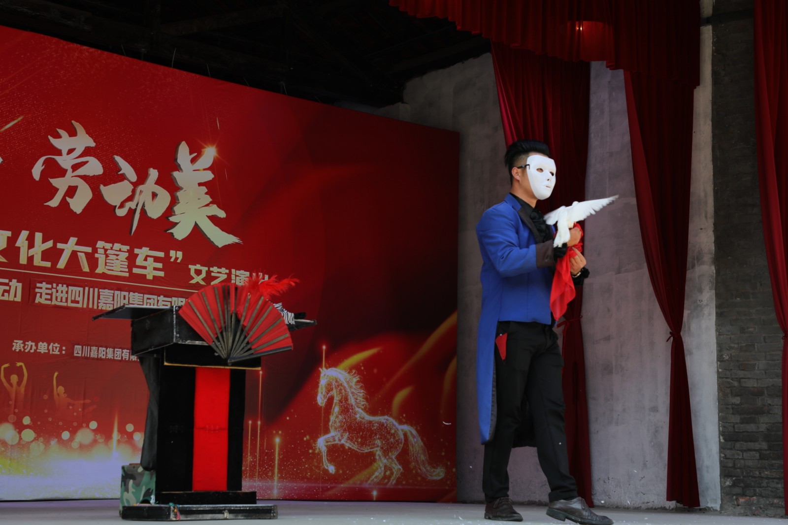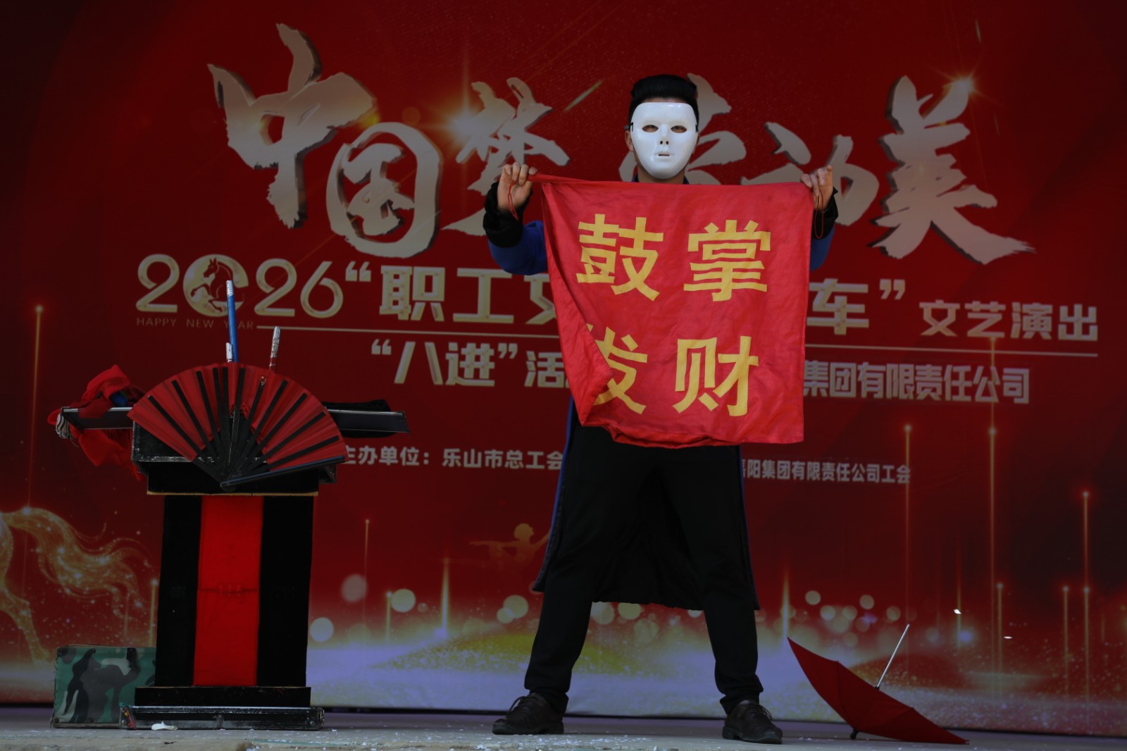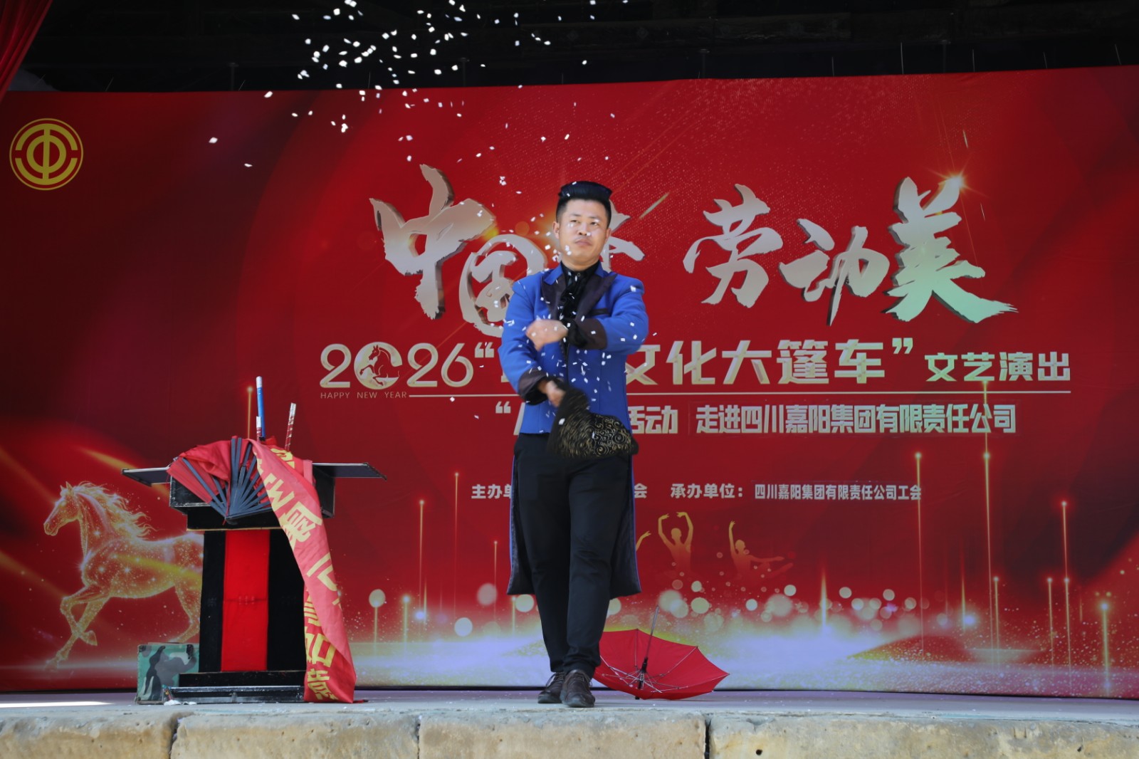 3月4日,乐山市总工会2026“职工文化大篷车”文艺演出走进嘉阳,在芭蕉沟东方红广场毛泽东思想大舞台,舞蹈、川剧变脸、吐火、魔术、歌曲等节目精彩上演,为职工及家属、游客们带来了一场听觉和视觉的盛宴。