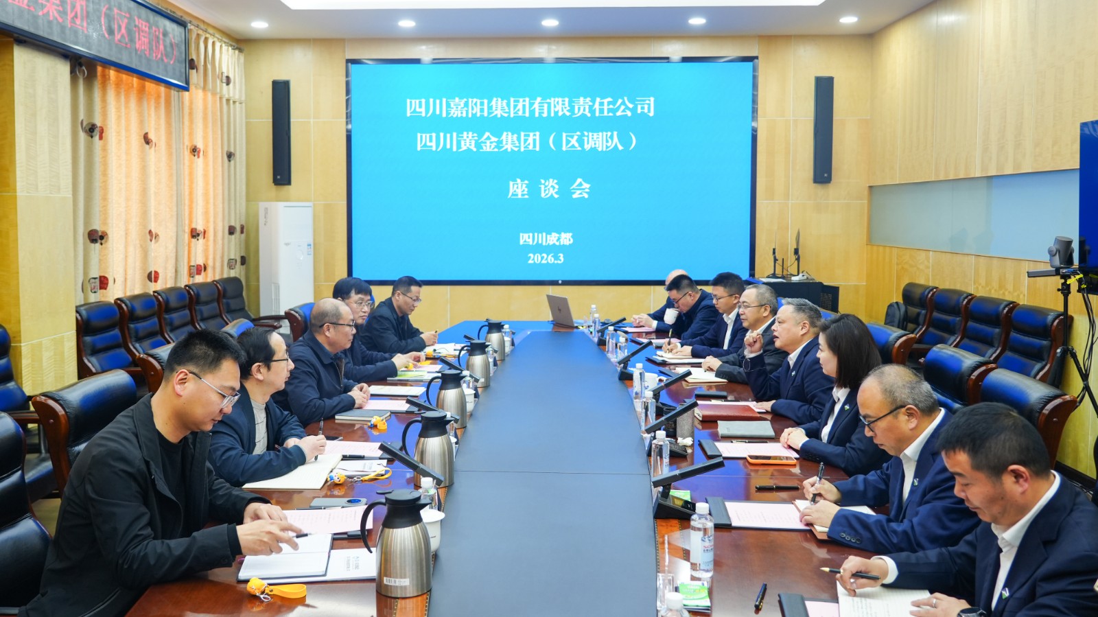 四川黄金集团(区调队)副书记孙瑕、总工程师王兆成,嘉阳集团副总经理、总工程师袁成金,双方相关部门负责人参加此次座谈交流。